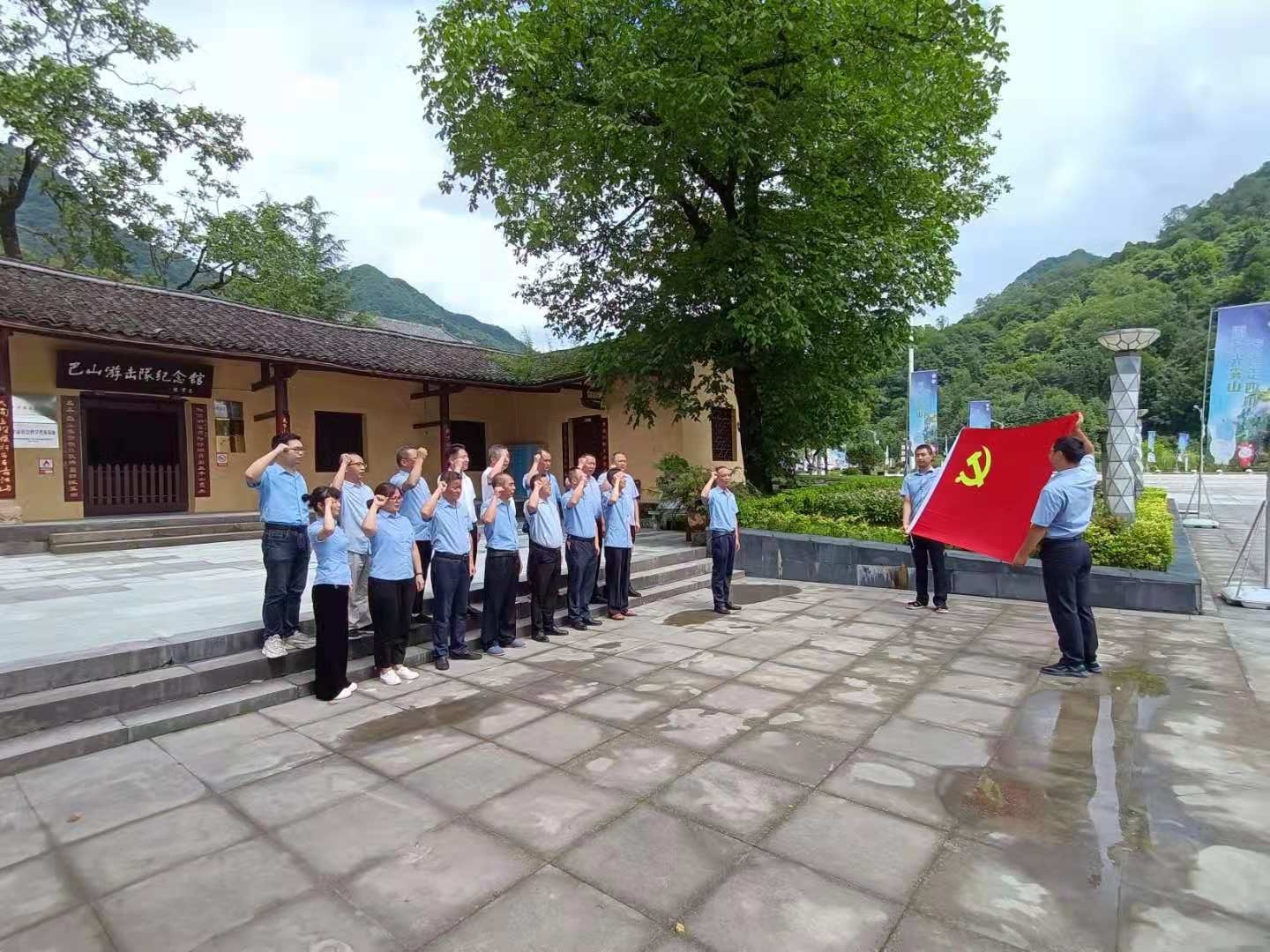 活動現(xiàn)場,同志們在講解員的帶領下參觀了巴山游擊隊紀念館,展廳內每一件展品、每一幅照片、每一段文字記載,生動再現(xiàn)了當年革命先烈追求民族獨立和解放而浴血奮戰(zhàn)的英勇歷史。講解員生動講述著感人肺腑的紅色故事,讓大家仿佛置身于炮火連天的歲月之中,深深感受到革命先烈們戰(zhàn)斗的艱辛,為黨犧牲的決心,革命必勝的信心。在巴山游擊隊紀念館前,公司黨總支書記、董事長李鵬帶領全體黨員重溫入黨誓詞,回顧入黨心路歷程,齊唱國歌,歌頌祖國。