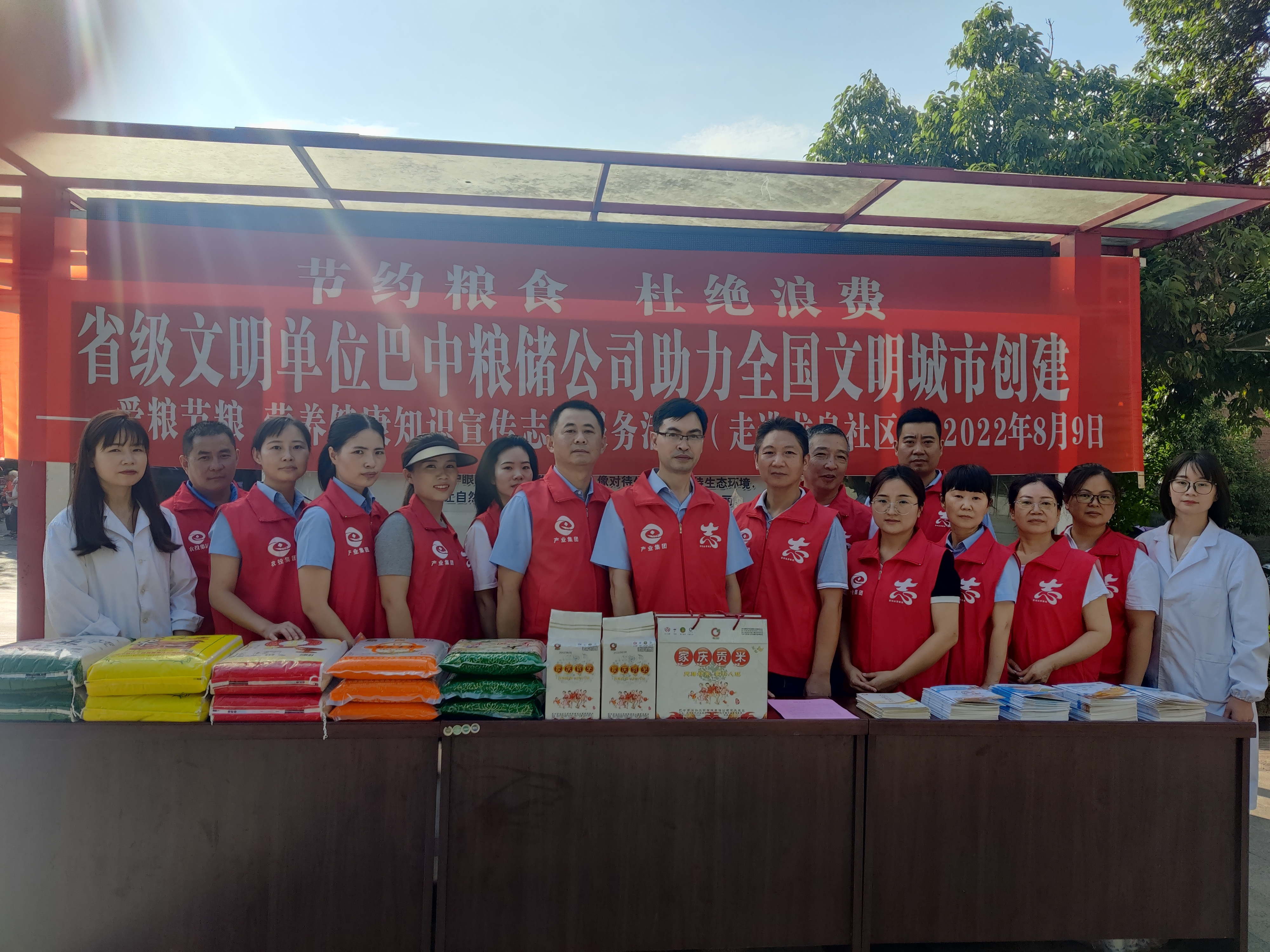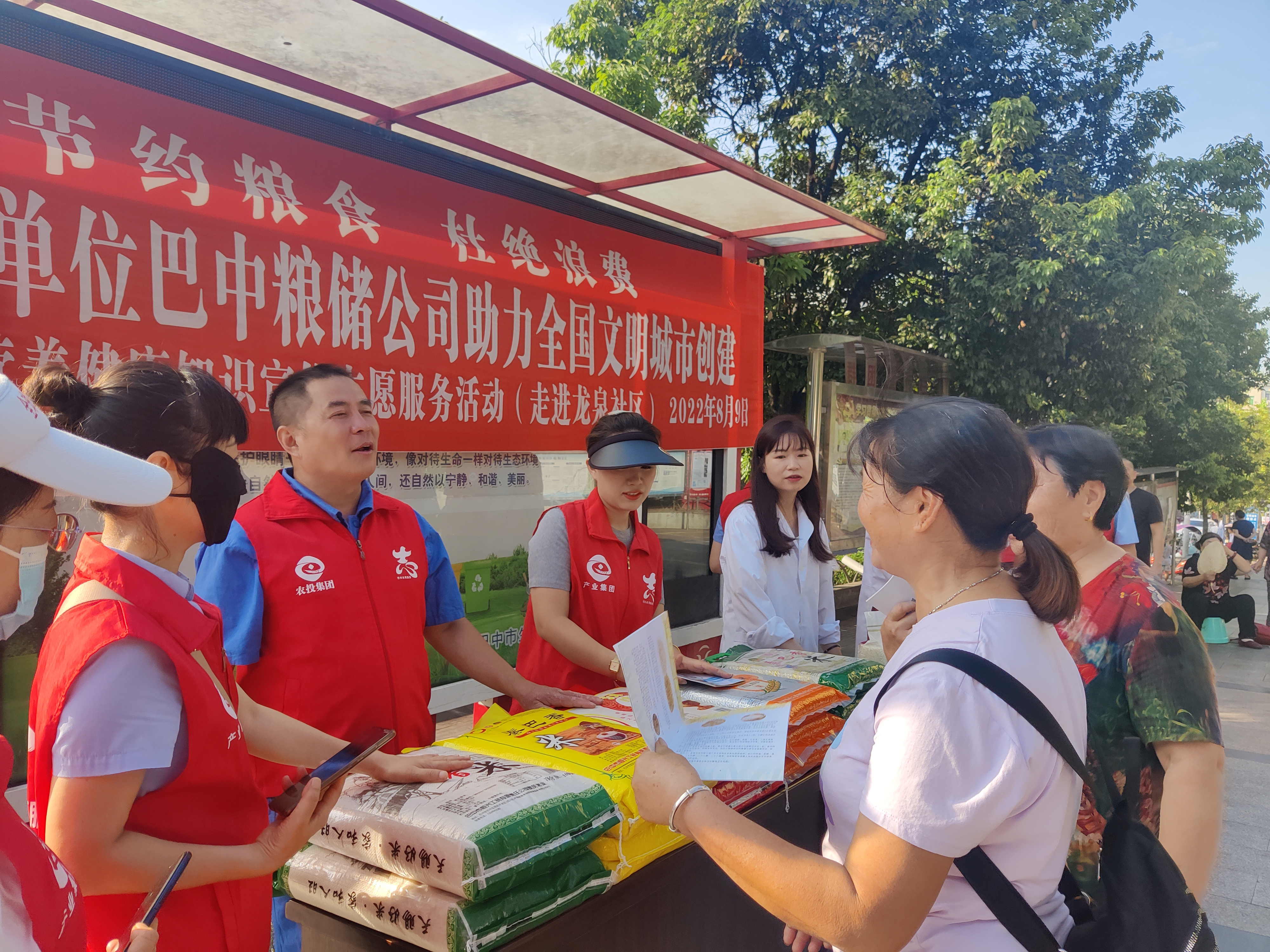 食為政首,糧安天下。為弘揚中華民族勤儉節(jié)約傳統(tǒng)美德,深入開展愛糧節(jié)糧宣傳教育,助力巴中全國文明城市創(chuàng)建。8月9日,四川巴中國家糧食和物資儲備庫有限公司走進巴州區(qū)江北街道龍泉社區(qū)開展“節(jié)約糧食·杜絕浪費”志愿服務(wù)活動。