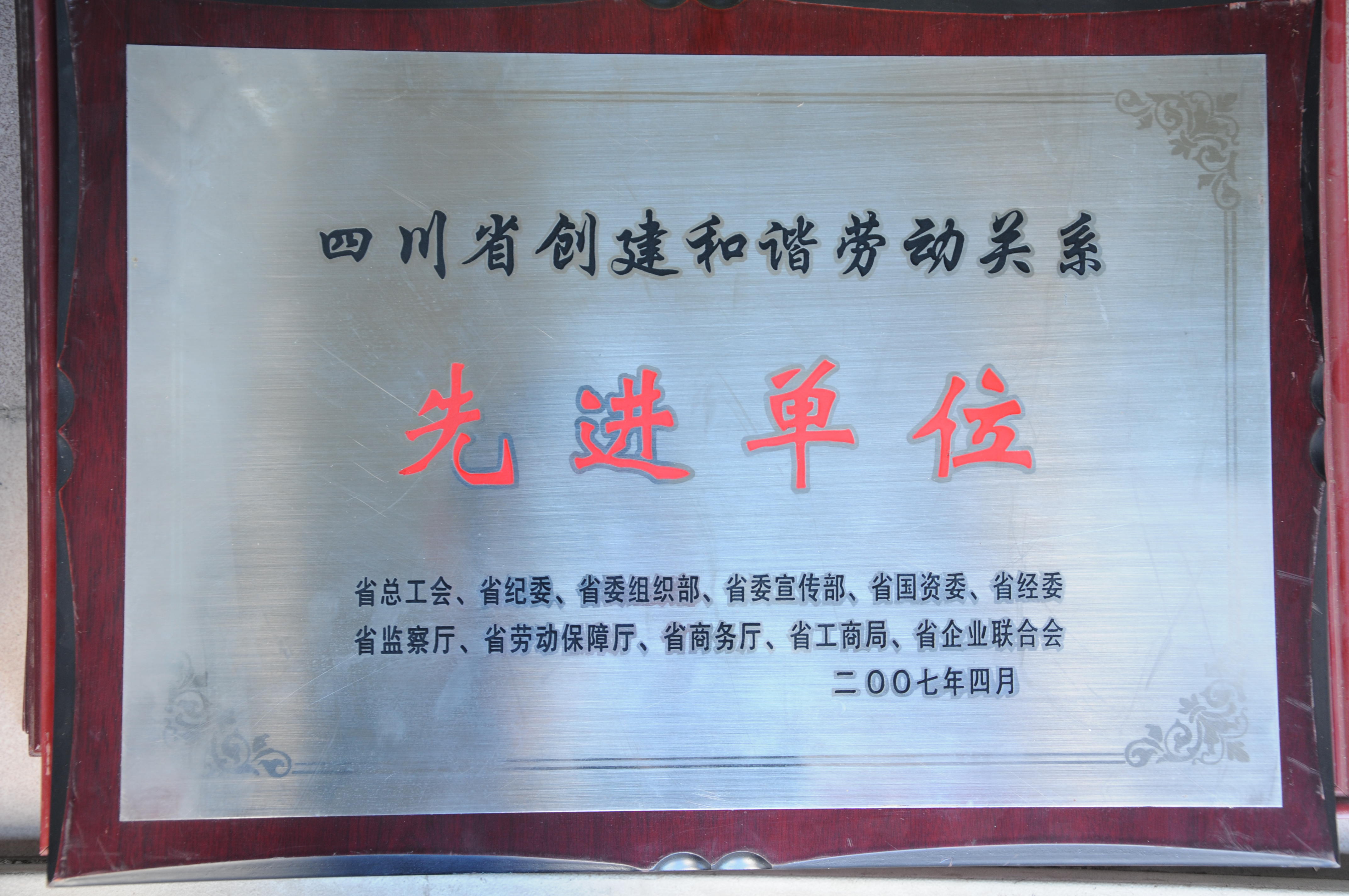 四川省創(chuàng)建和諧勞動關系 先進單位