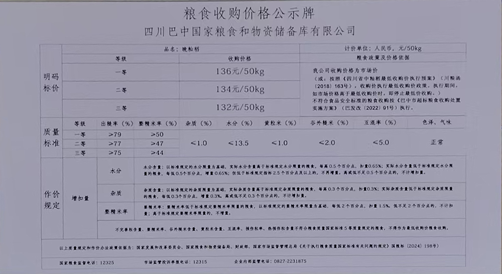 為認真貫徹國家糧食收購政策,全面落實省、市決策部署,踐行糧食安全黨政同責責任,充分發(fā)揮行業(yè)主體責任,做好秋糧收購工作,切實保護種糧農民利益。現(xiàn)將四川巴中國家糧食和物資儲備庫有限公司2025年秋糧收購相關信息公示如下: